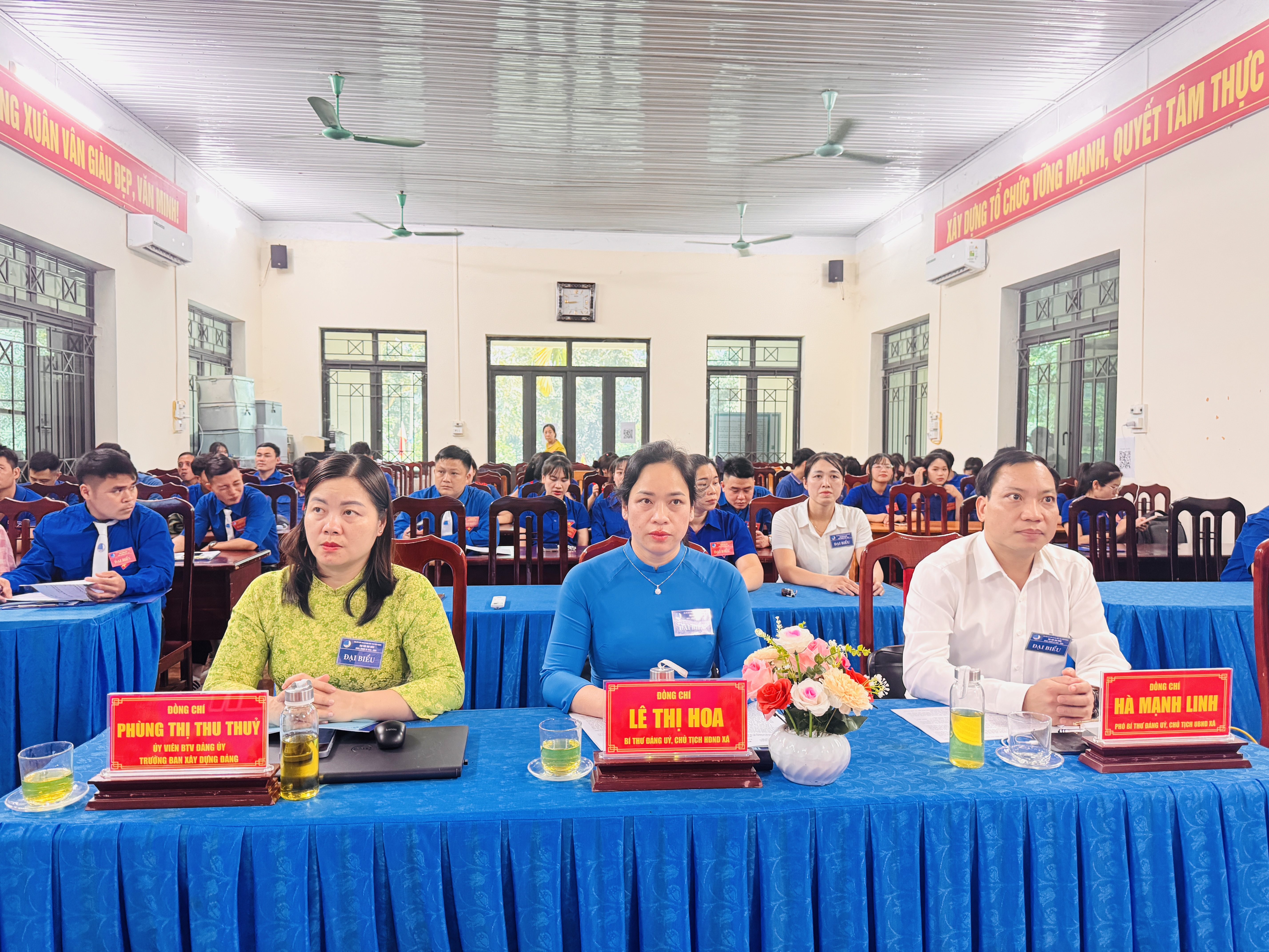 Dự và chỉ đạo Đại hội có các đồng chí: Lê Thị Hoa, Bí thư Đảng ủy, Chủ tịch HĐND xã; Hà Mạnh Linh, Phó Bí thư Đảng ủy, Chủ tịch UBND xã; Phùng Thị Thu Thủy, Ủy viên Ban Thường vụ Đảng ủy, Trưởng Ban Xây dựng Đảng, Trưởng Ban Văn hóa – Xã hội, HĐND xã cùng các đồng chí Uỷ viên BTV, BCH Đảng bộ; lãnh đạo HĐND, UBND, Uỷ ban MTTQ; đại diện các tổ chức chính trị – xã hội của xã và 68 đại biểu chính thức, đại diện cho thanh niên tiêu biểu trên toàn xã.