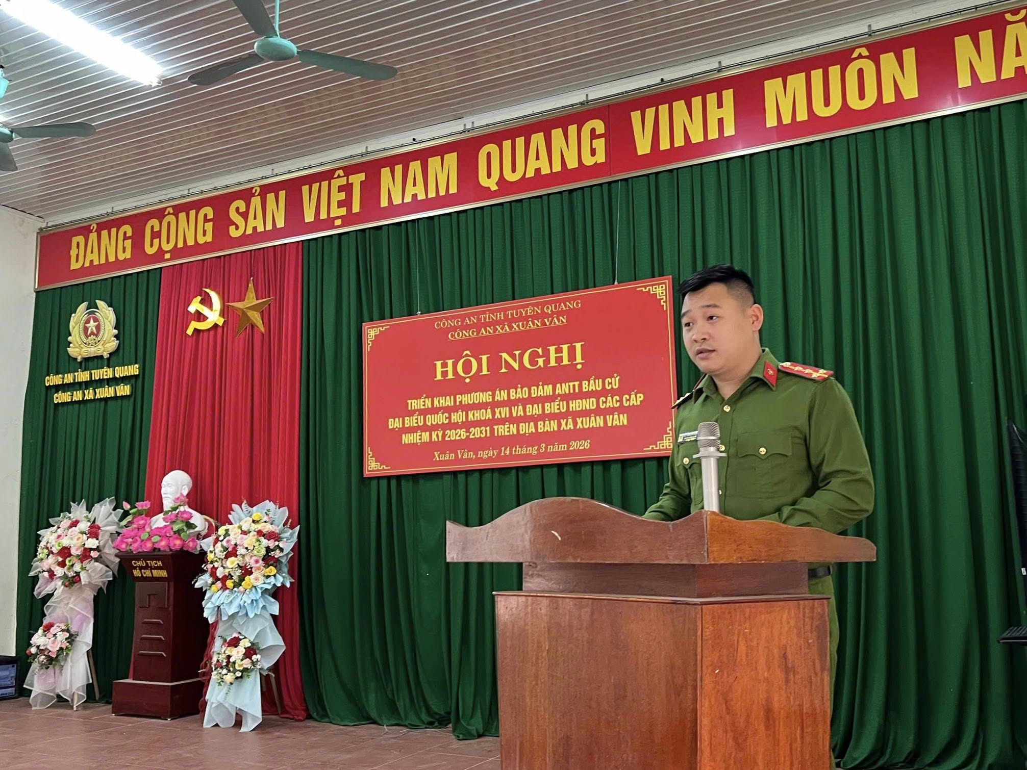 Hướng tới cuộc bầu cử đại biểu Quốc hội khóa XVI và đại biểu Hội đồng nhân dân các cấp nhiệm kỳ 2026–2031, sáng ngày 14/03/2026, Công an xã Xuân Vân tổ chức Hội nghị quán triệt, triển khai phương án bảo đảm an ninh, trật tự phục vụ bầu cử trên địa bàn, thể hiện quyết tâm chính trị cao trong việc giữ vững ổn định an ninh chính trị, trật tự an toàn xã hội.
