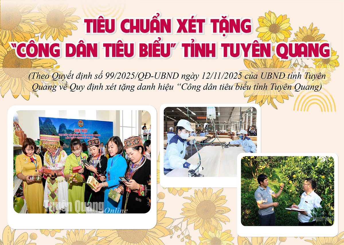 Uỷ ban nhân dân tỉnh Tuyên Quang vừa ban hành Quyết định số 99/2025/QĐ-UBND ngày 12 tháng 11 năm 2025 quy định về tiêu chuẩn xét tặng danh hiệu công dân tiêu biểu tỉnh Tuyên Quang