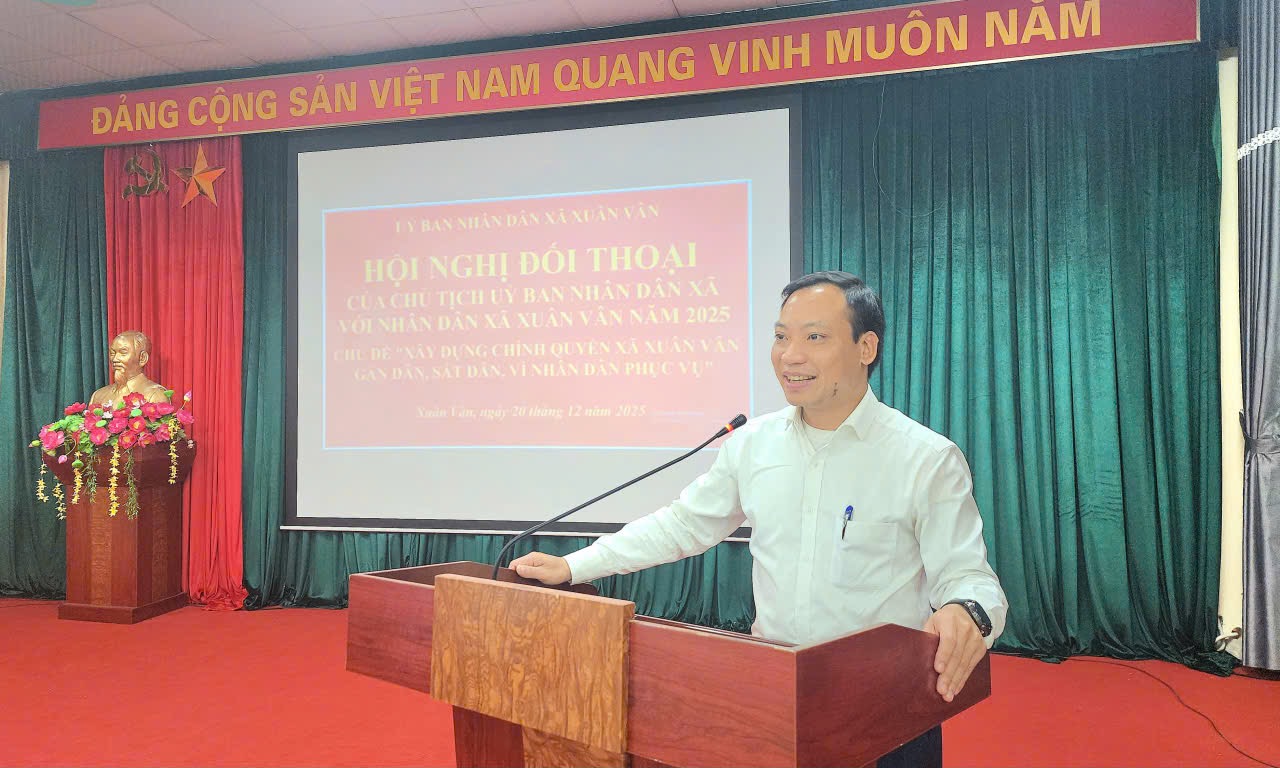 Sáng ngày 20/12/2025, tại Nhà Văn hoá xã Xuân Vân, đồng chí Hà Mạnh Linh, Phó Bí thư Đảng uỷ, Chủ tịch Uỷ ban nhân dân xã đã chủ trì buổi đối thoại trực tiếp với nhân dân với chủ đề: “Xây dựng chính quyền xã Xuân Vân gần dân, sát dân, vì nhân dân phục vụ” đồng thời xác định: Tiếp tục cụ thể hóa cơ chế "Đảng lãnh đạo, Nhà nước quản lý, Nhân dân làm chủ"; Củng cố mối quan hệ gắn bó máu thịt giữa chính quyền với Nhân dân; Kịp thời nắm bắt tâm tư, nguyện vọng và giải quyết những vướng mắc phát sinh ngay từ thực tiễn sản xuất, đời sống của nhân dân trên địa bàn xã.